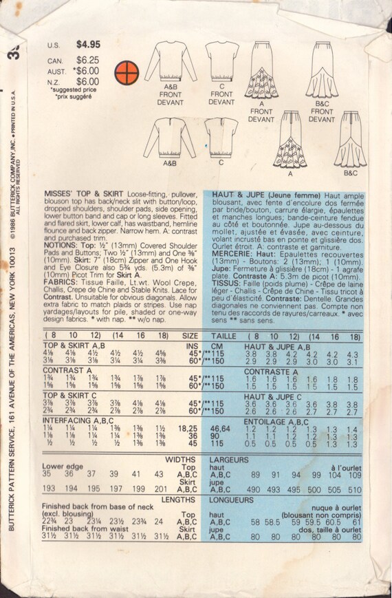 Butterick 3955 Sewing Pattern Top And Skirt Size 8 10 12 Etsy